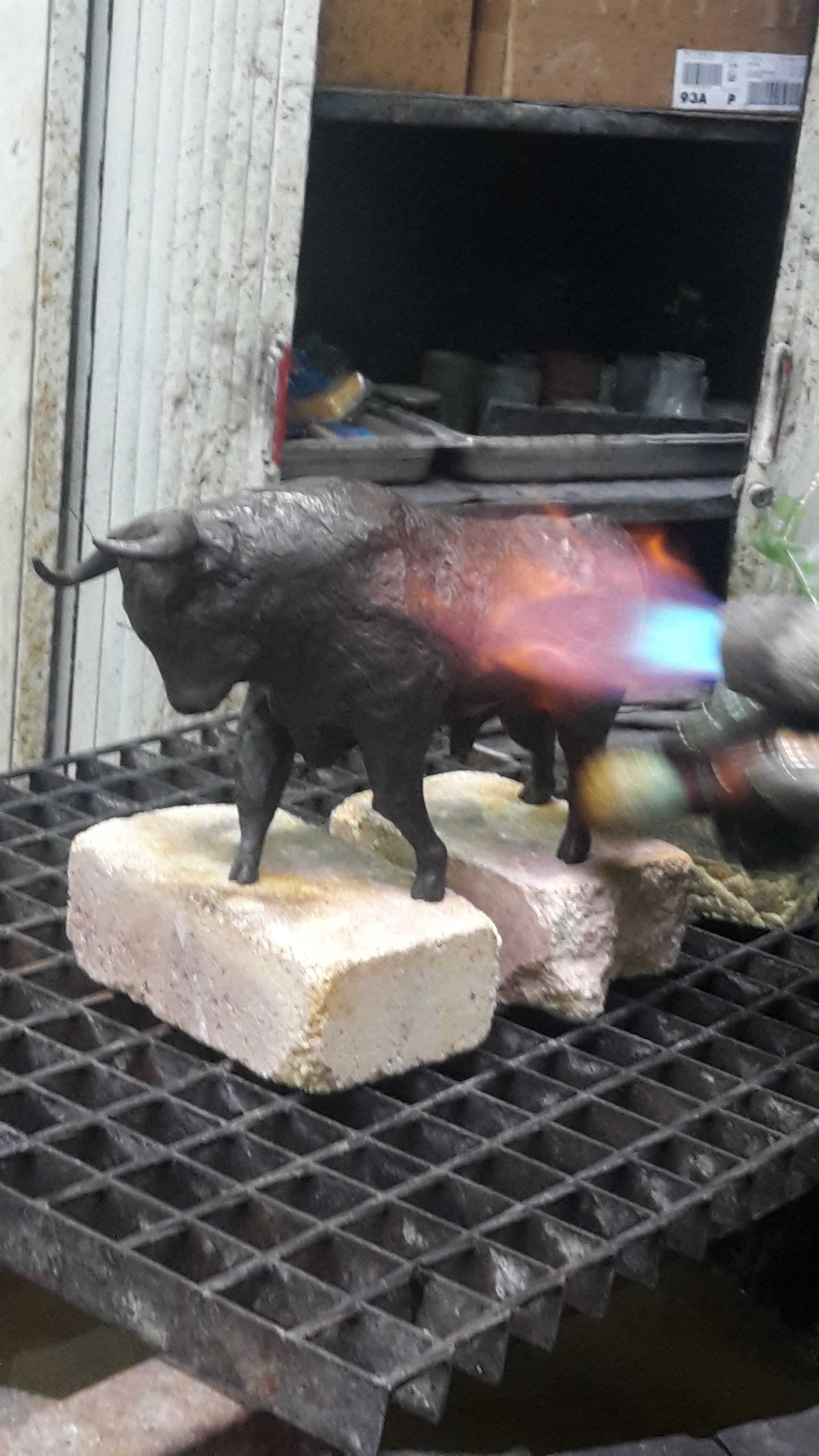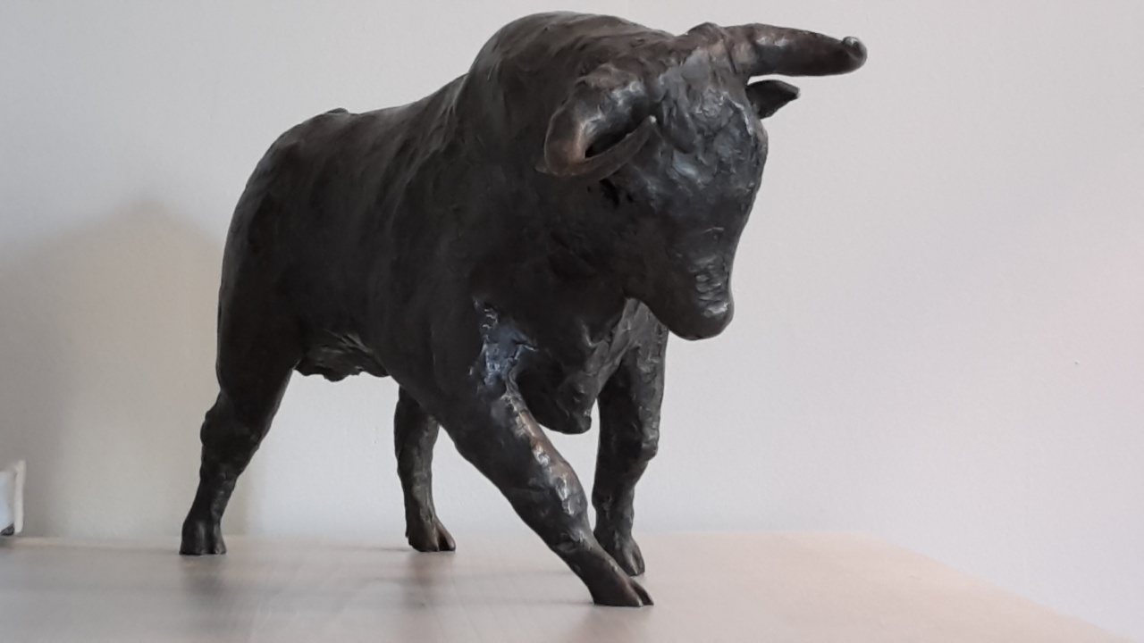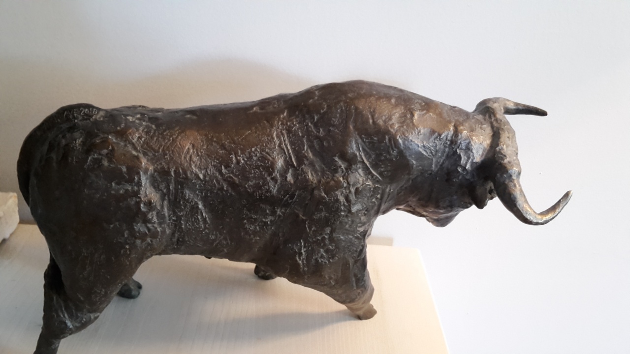 Le taureau de combat (h: 17.5 cm X 32 cm) a été fondu en bronze courant octobre 2018.