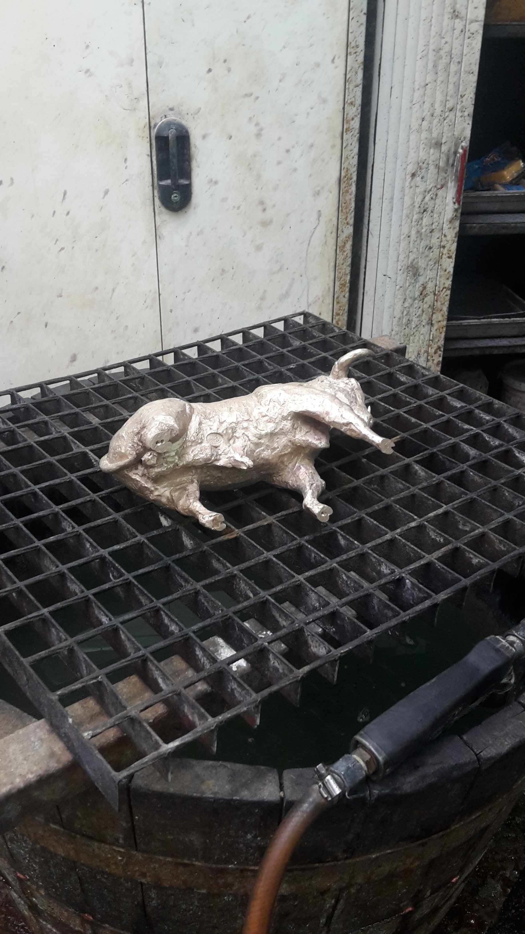 Le taureau de combat (h: 17.5 cm X 32 cm) a été fondu en bronze courant octobre 2018.